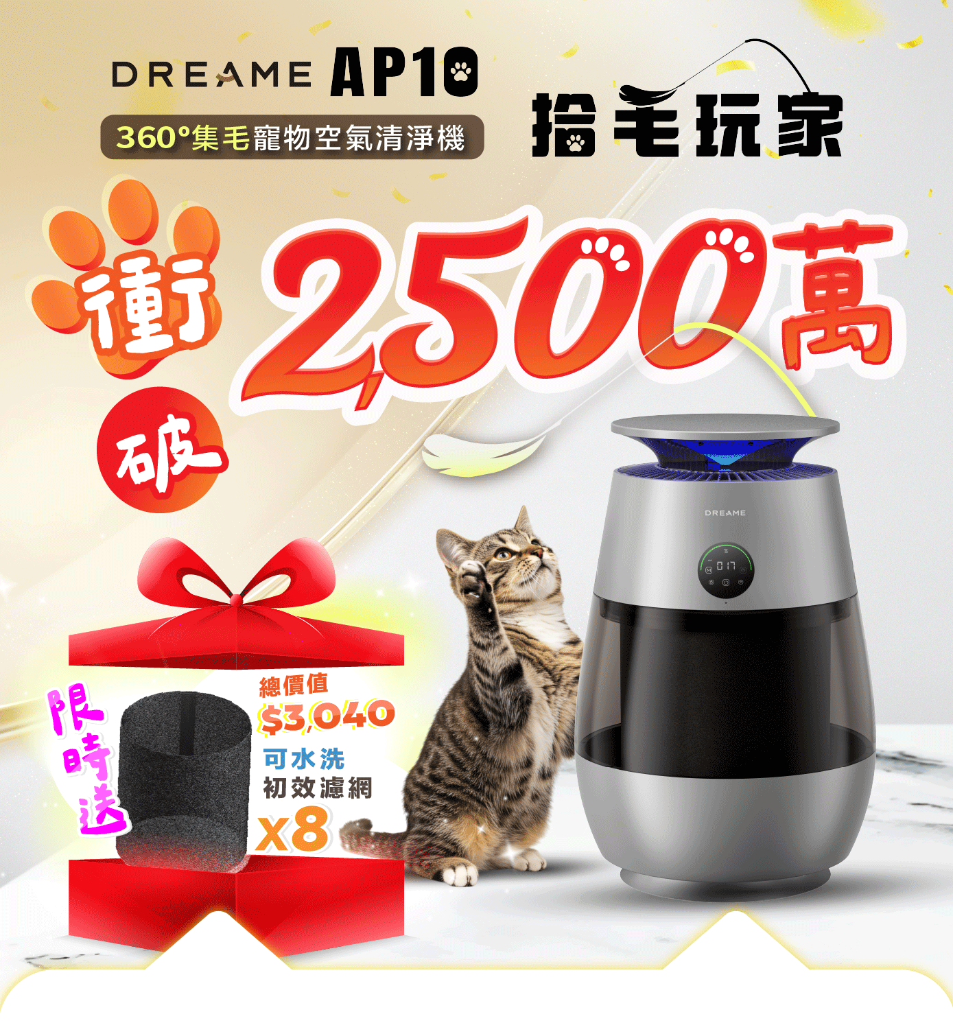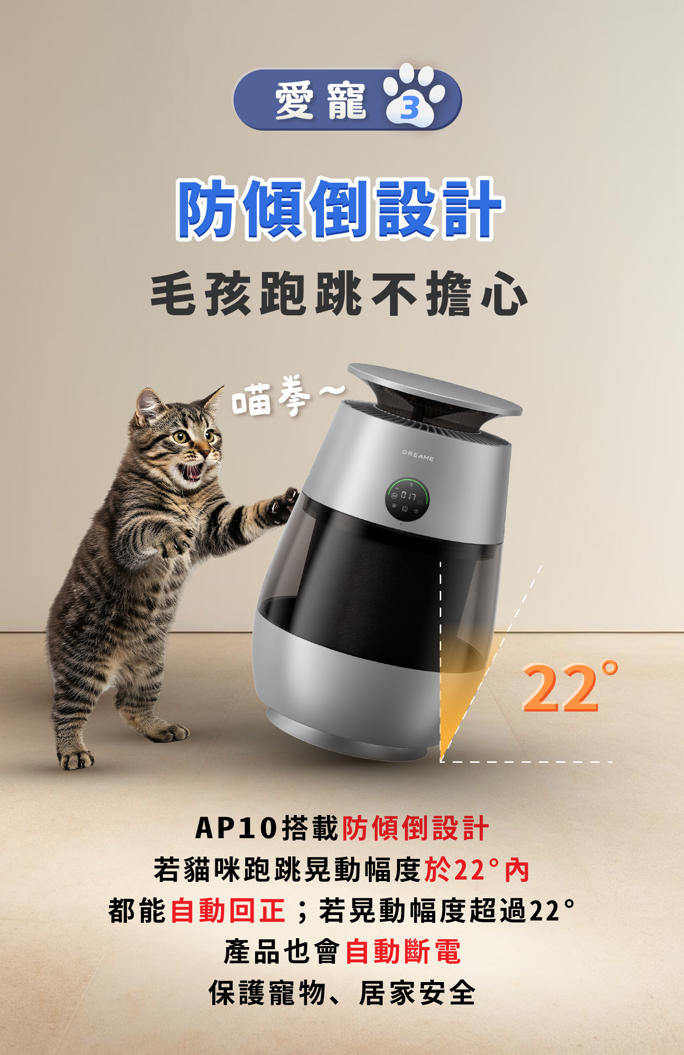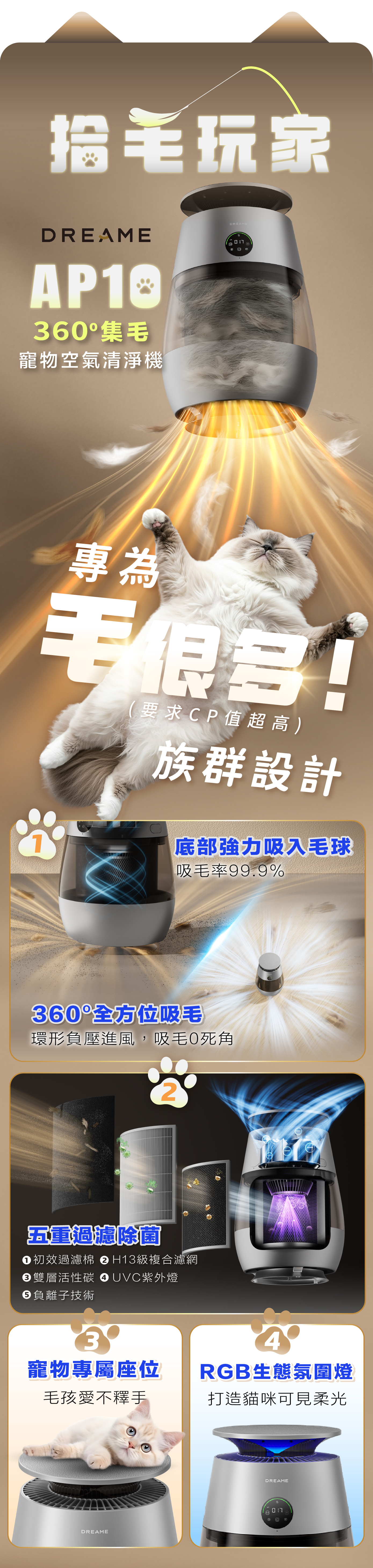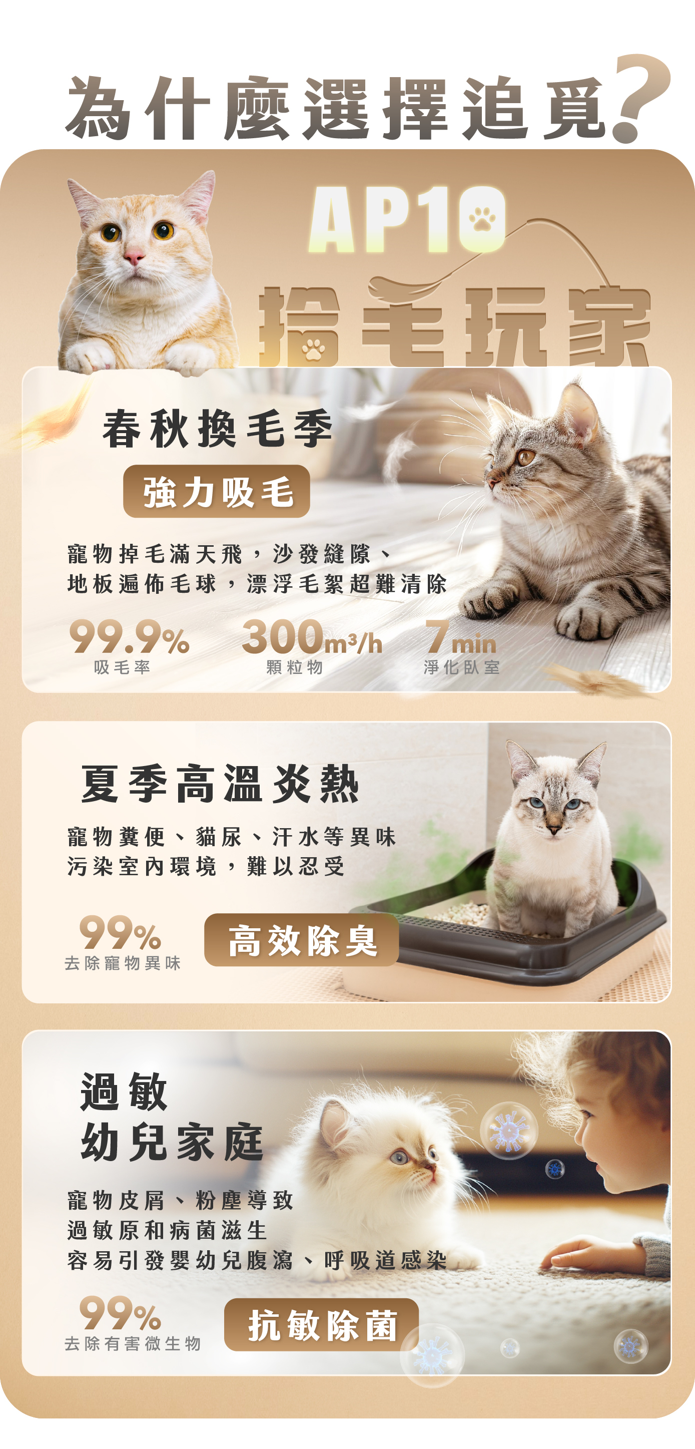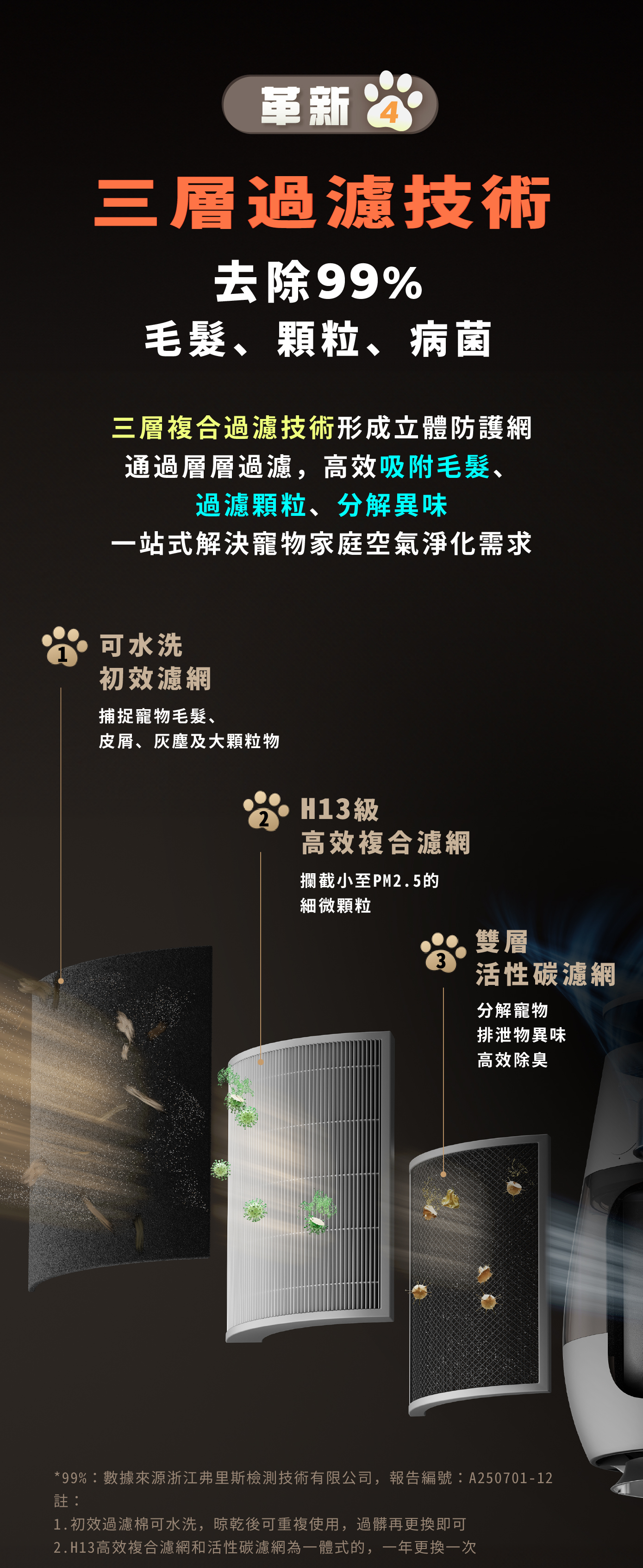 3️⃣ 三重過濾技術|可過濾毛髮、吸附顆粒、清除異味、淨化空氣