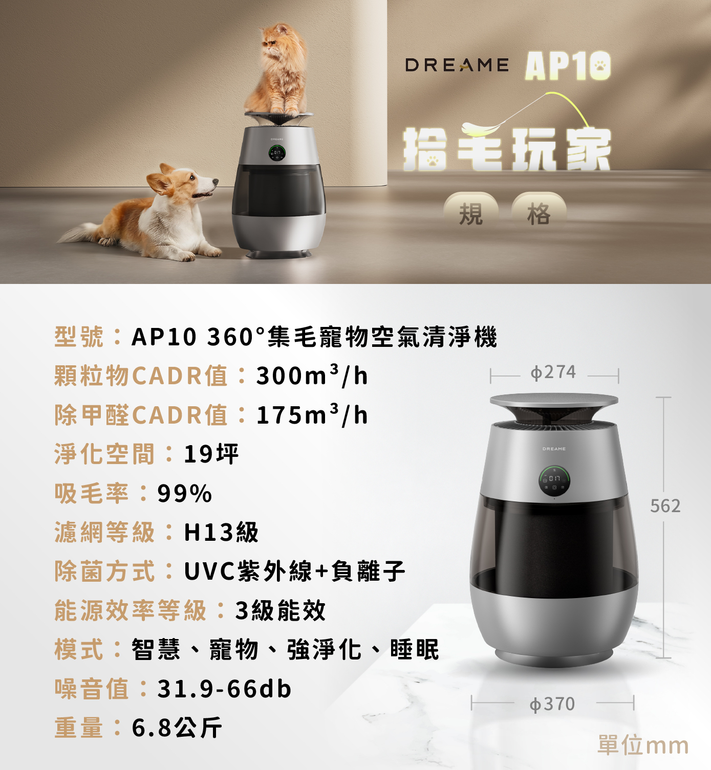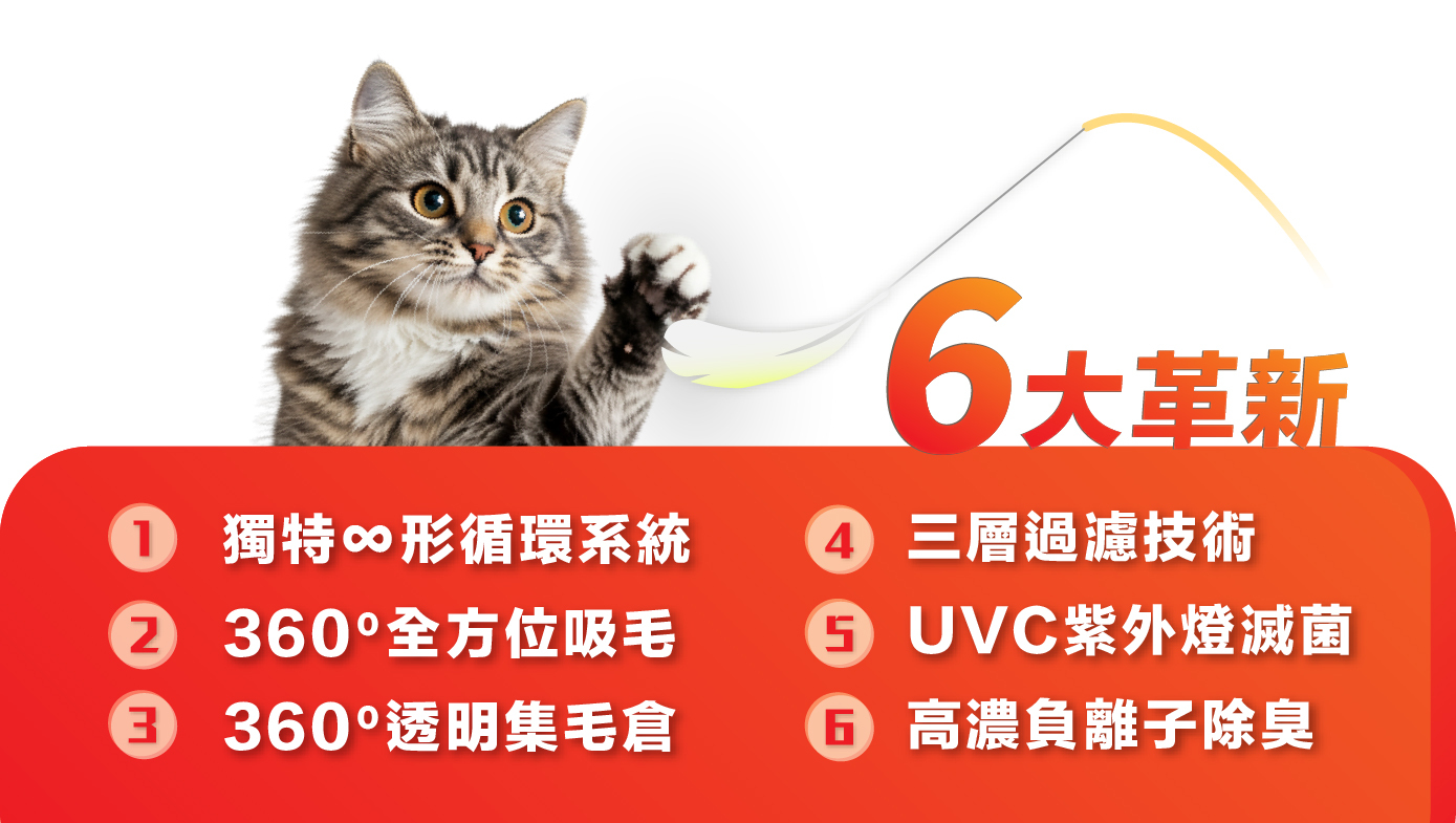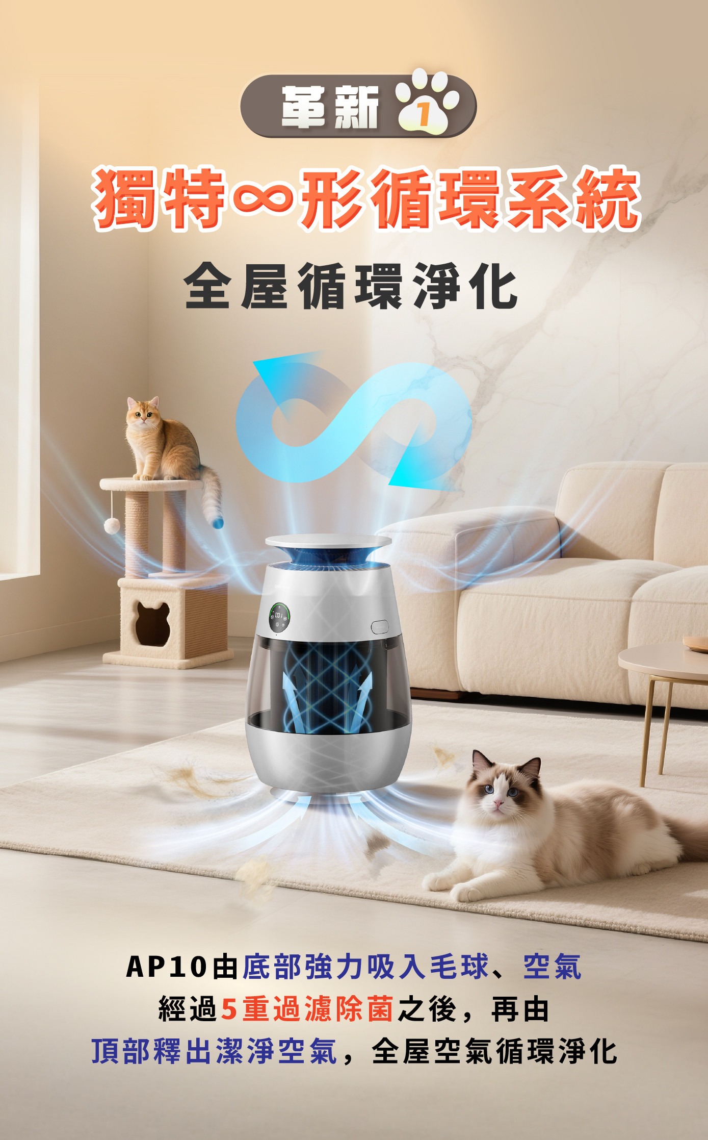 1️⃣ 獨特∞形循環系統|底部強力吸毛,頂部釋放潔淨空氣