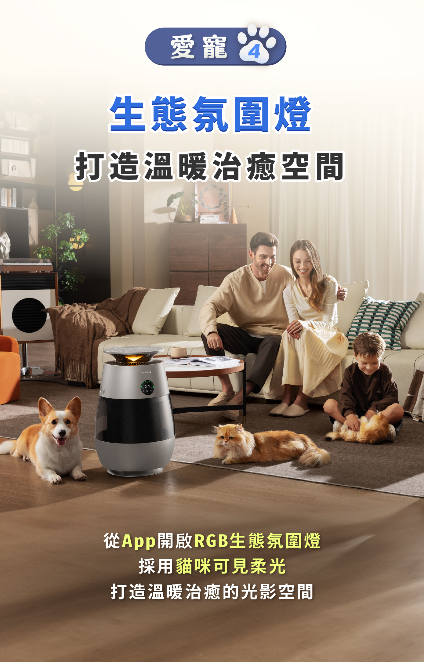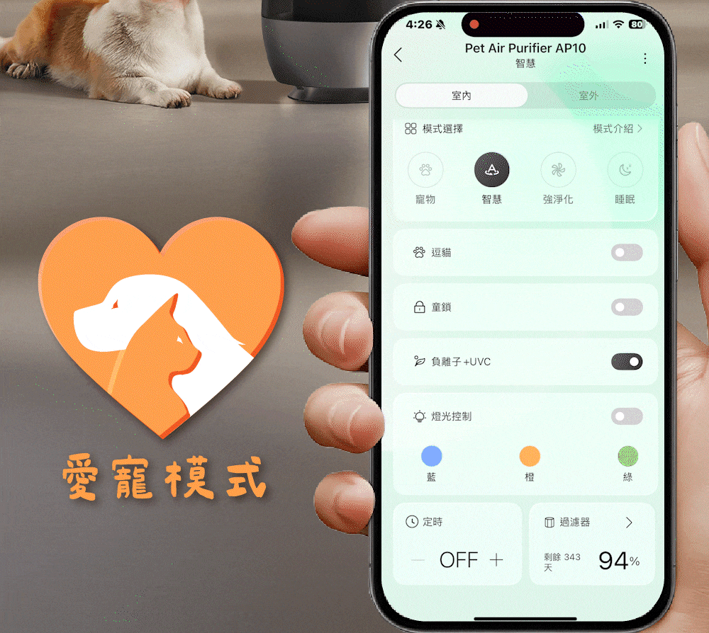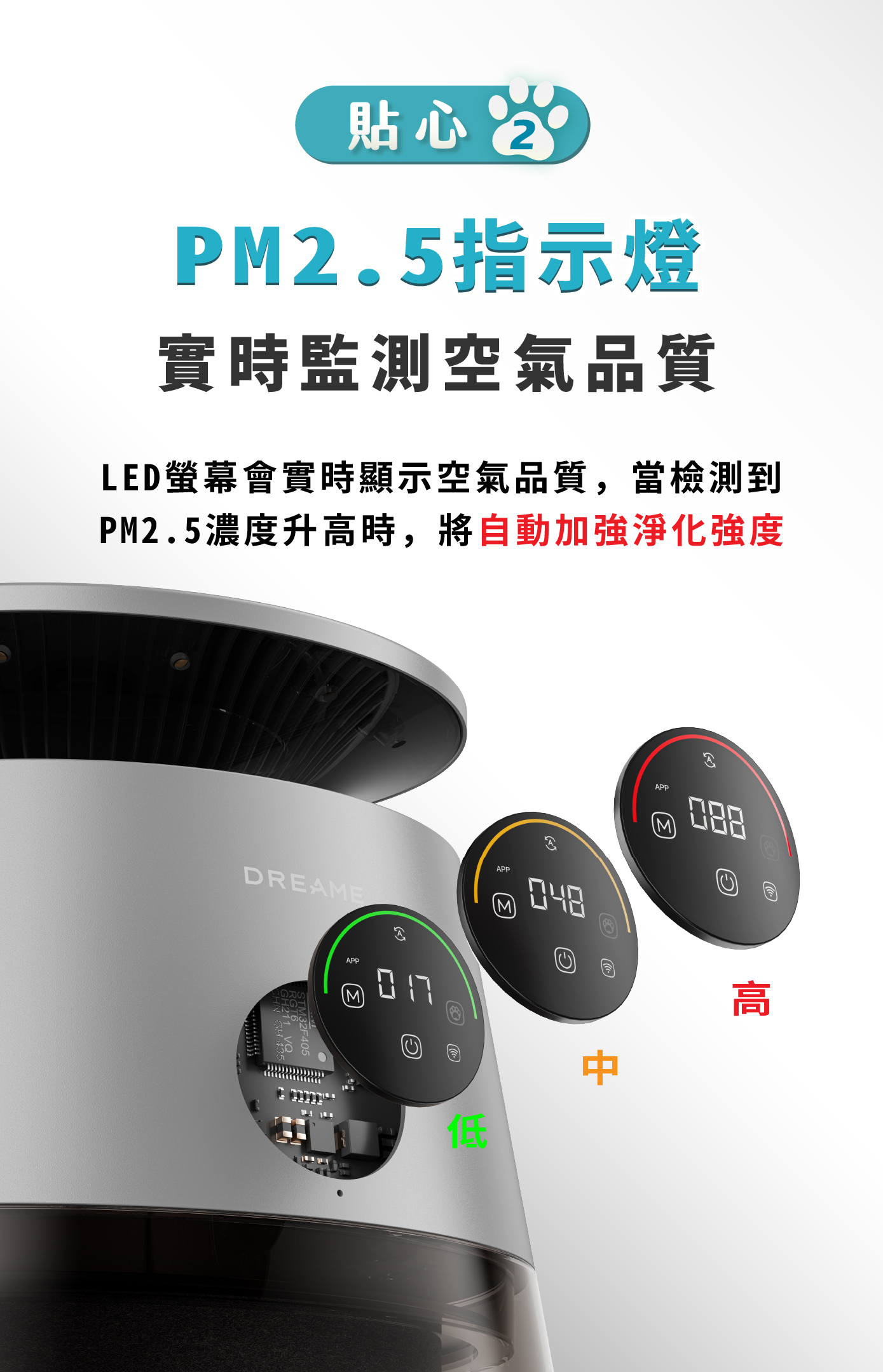 6️⃣ 實時監測空氣|實時偵測PM2.5,LED燈條動態顯色,超標自動加強淨化