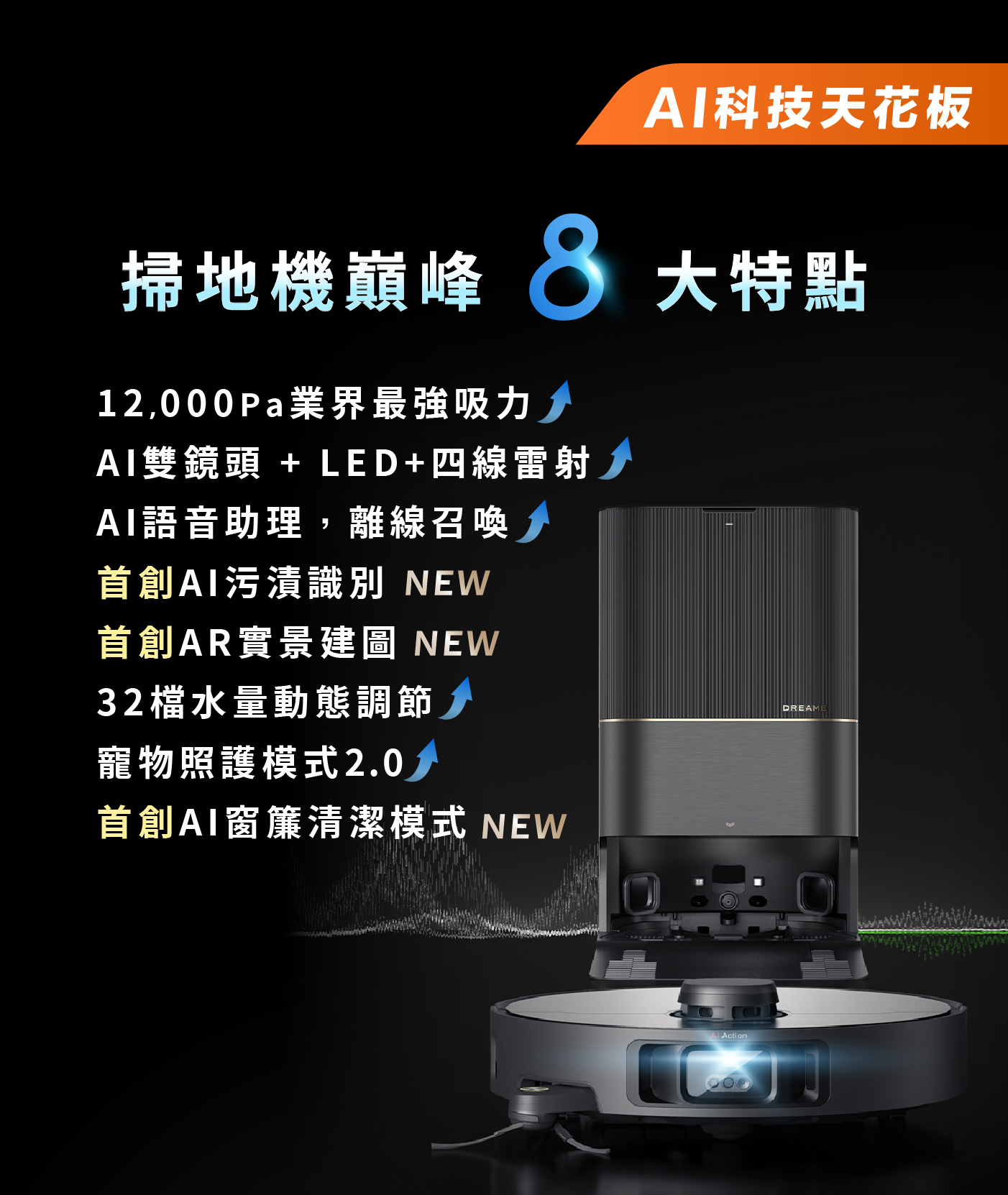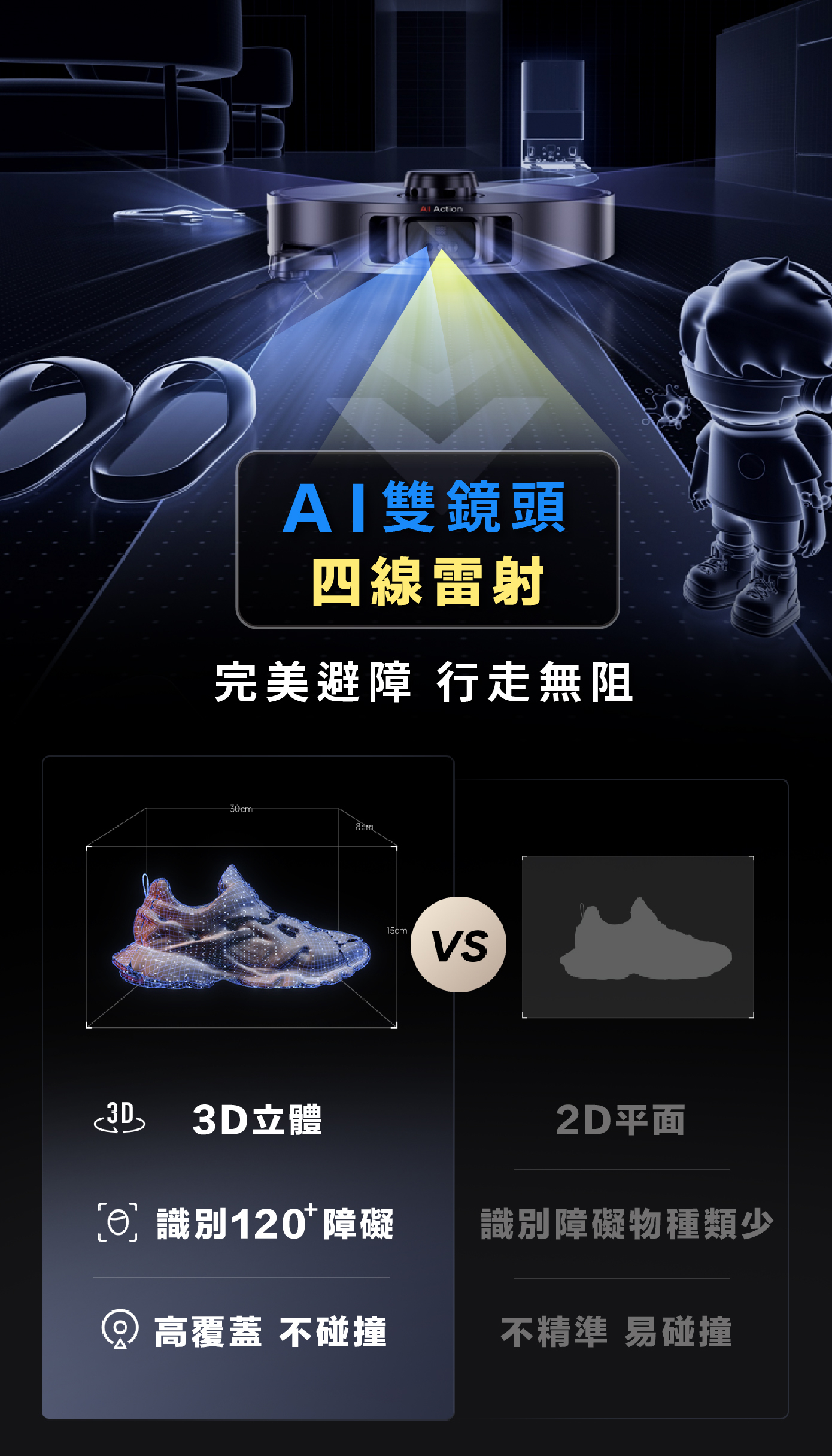 ▍AI雙鏡頭感測 + 四線雷射,最高規格避障