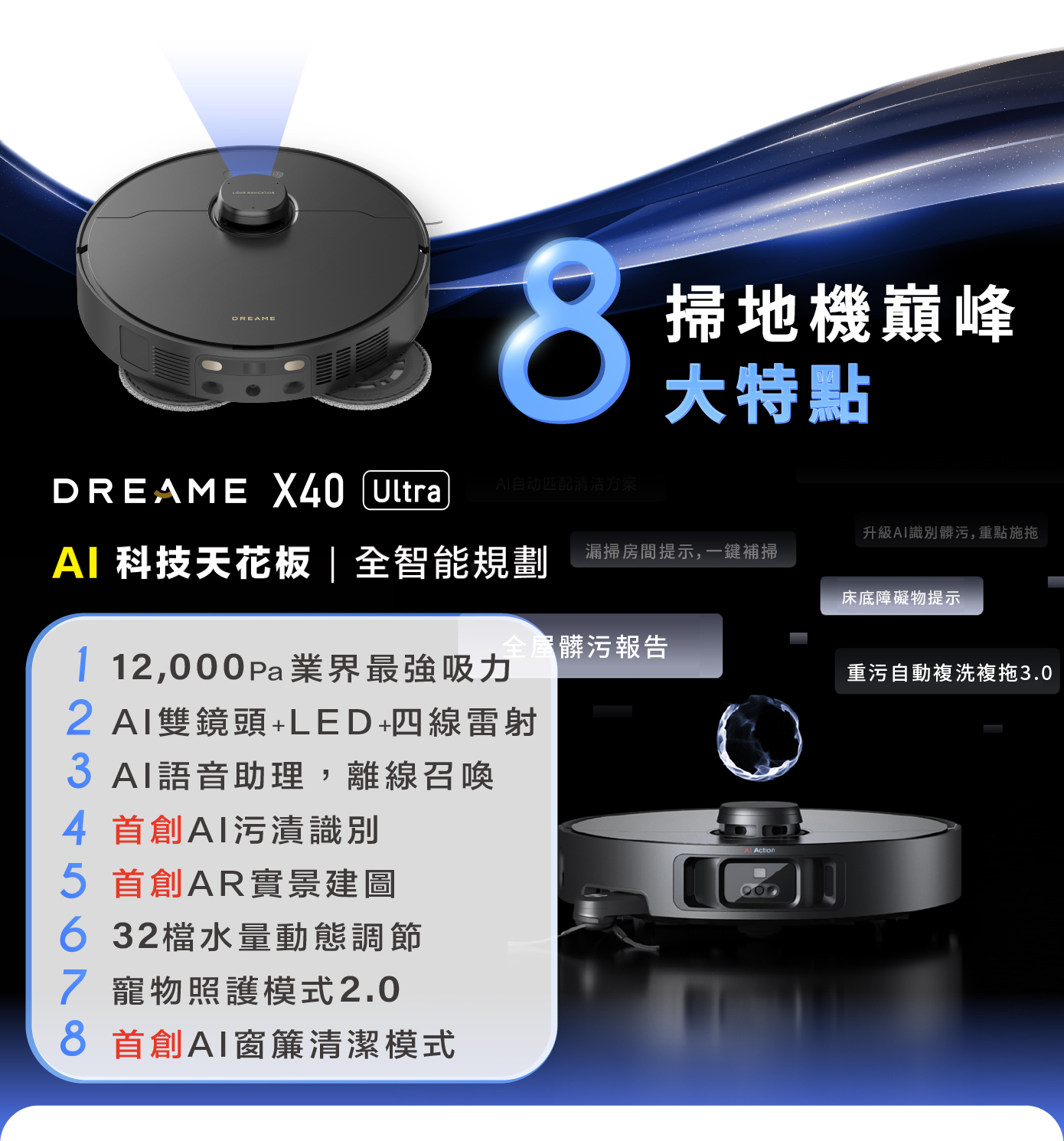 X40 Ultra 採用更升級的AI智能語音,除了可以使用語音對話之外,若要啟用更細節的指令,X40 Ultra還會聰明地進行反問,以確保任務的成功進行。