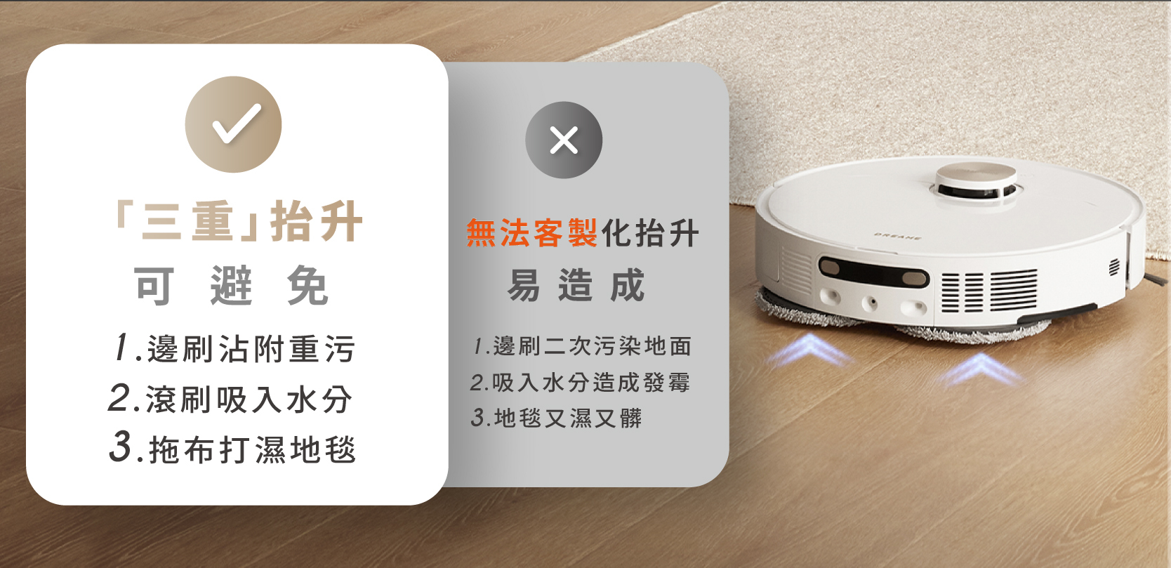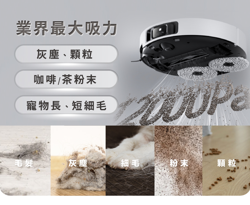 ▍「純掃不拖」和「長毛地毯」清潔,自動拆卸拖布