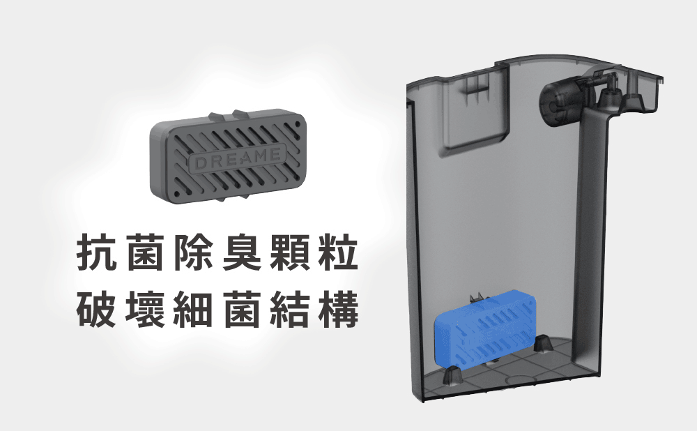 X40 Ultra搭載全新污水箱除臭模組,在與水份接觸後,會緩釋活性成分與細菌細胞膜、膜蛋白結合,並破壞其結構,藉此達到抑菌的目的,進而避免臭味產生。