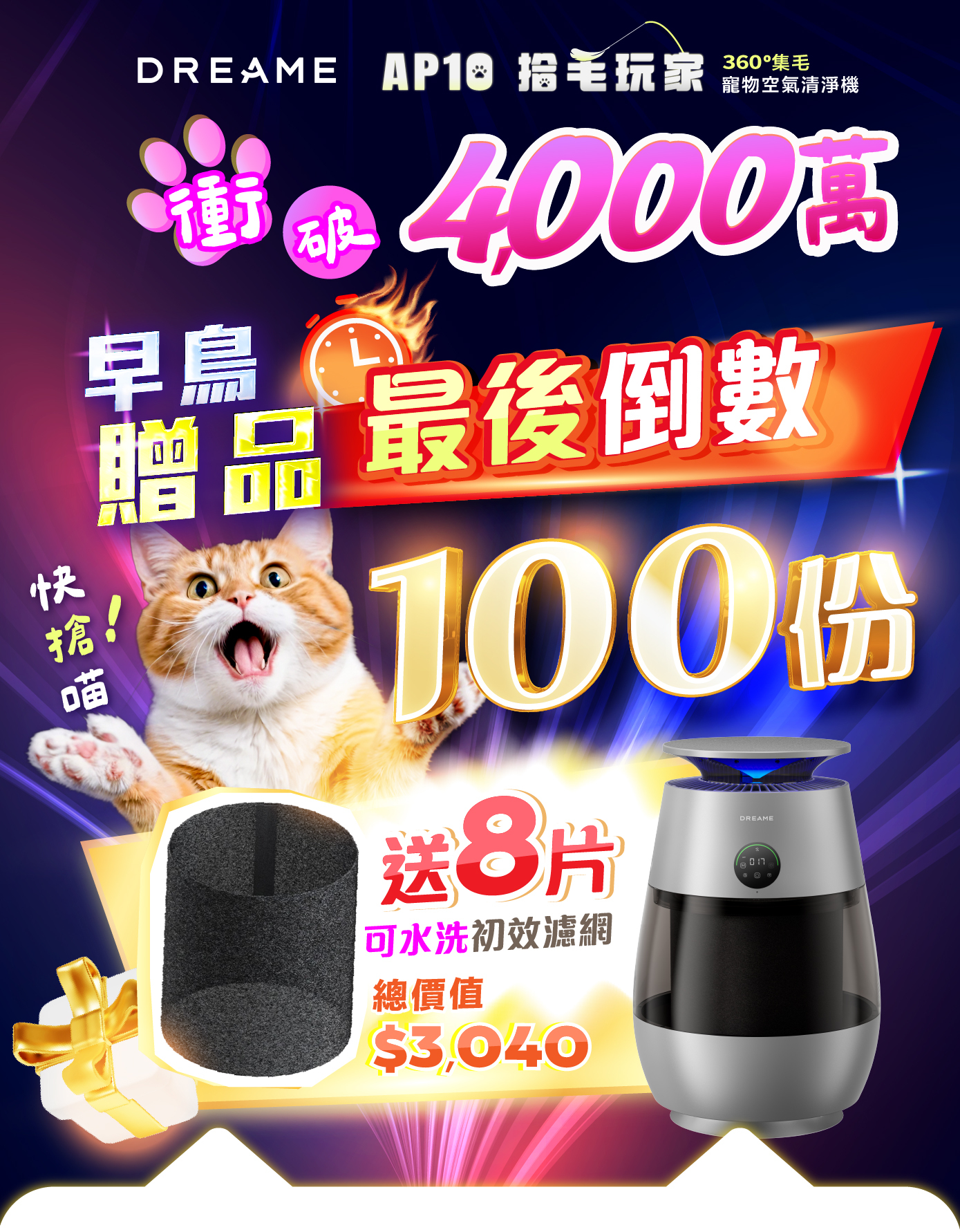 3️⃣ 三重過濾技術|可過濾毛髮、吸附顆粒、清除異味、淨化空氣
