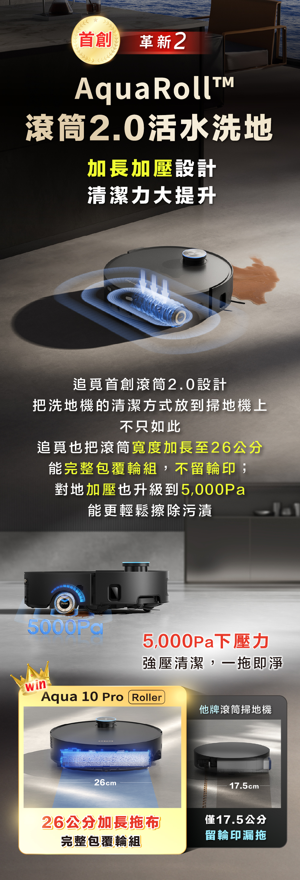 🥇首創|全新滾筒2.0,5000Pa對地加壓