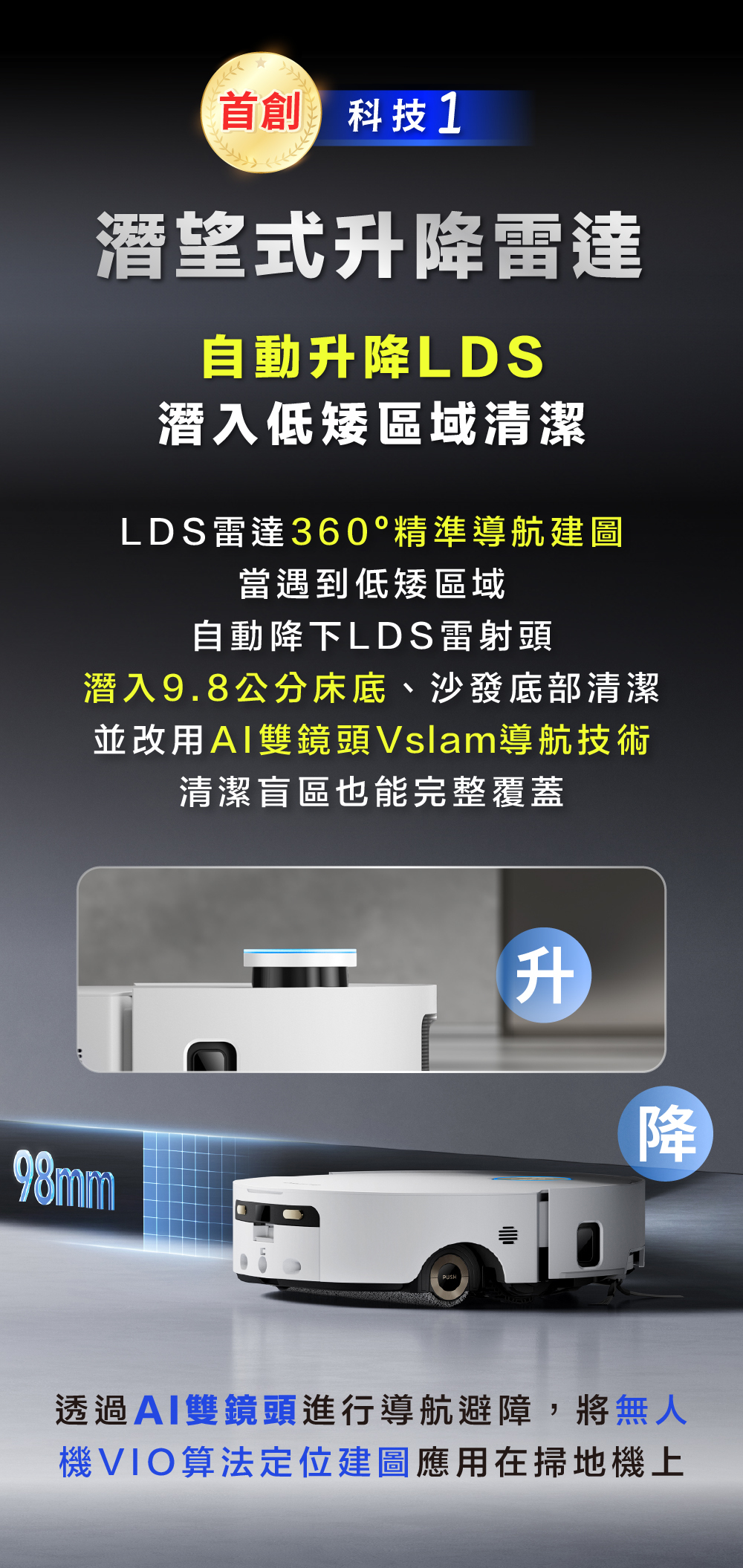 🥇首創|升降雷達,潛入9.8公分低矮區域