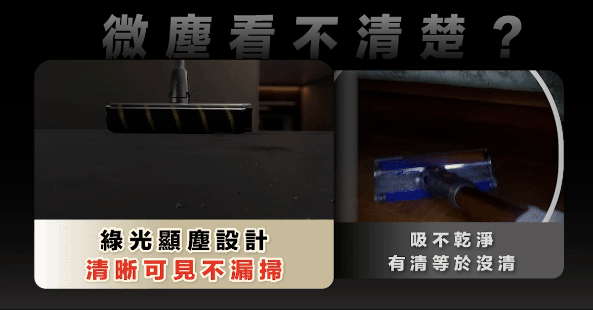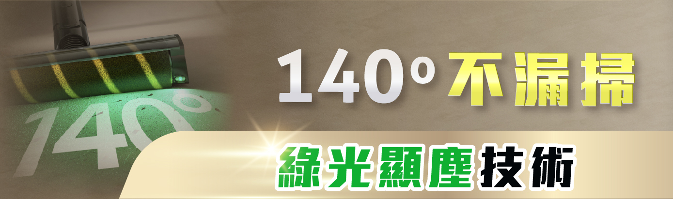 140°超廣角綠光顯塵|16倍放大灰塵,清潔更徹底