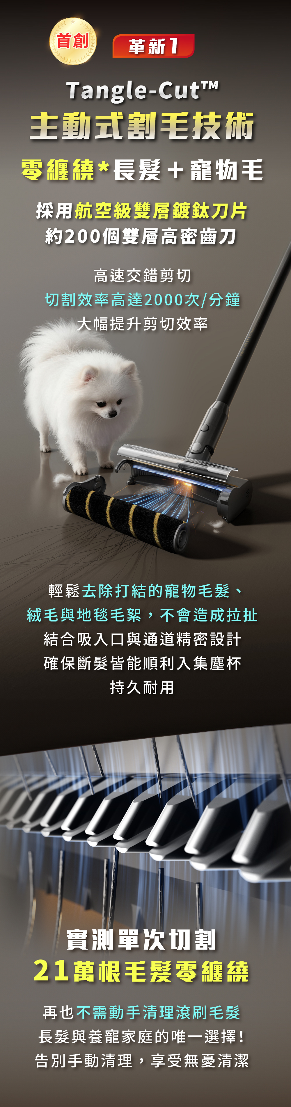 Tangle-Cut™主動式割毛技術|截斷毛髮,不纏繞滾刷