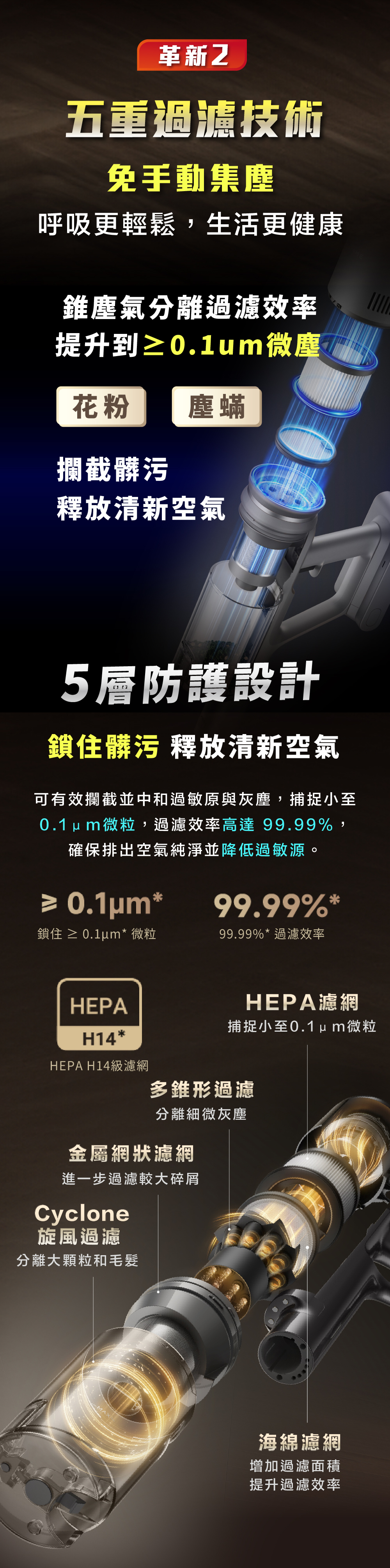 五重過濾技術|多錐塵氣分離,過濾效率提升到 ≥0.1um微塵