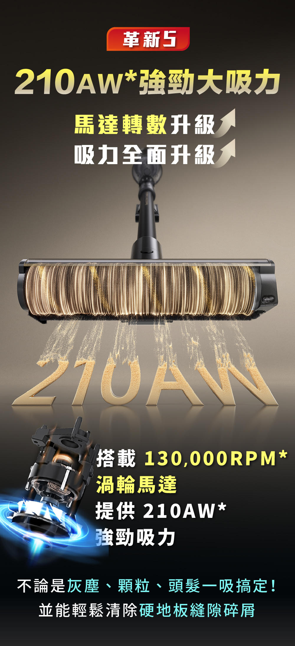210AW超強吸力|灰塵、碎屑、顆粒,全部一網打盡