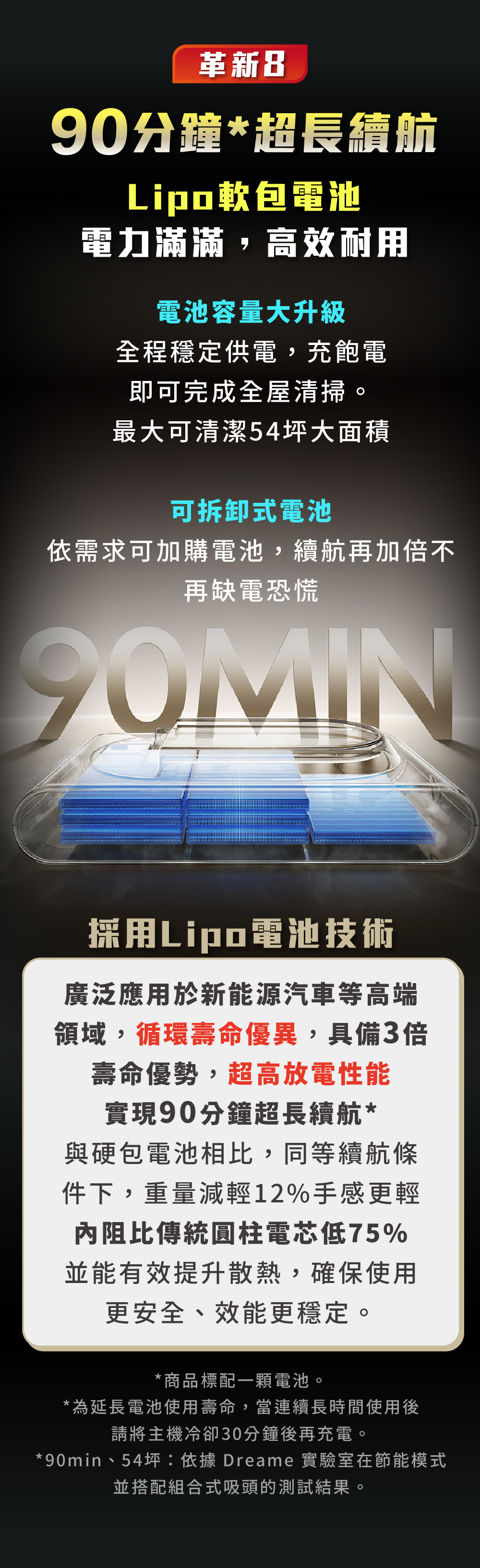 90分鐘超長續航|清潔全屋不斷電,可拆卸更換電池