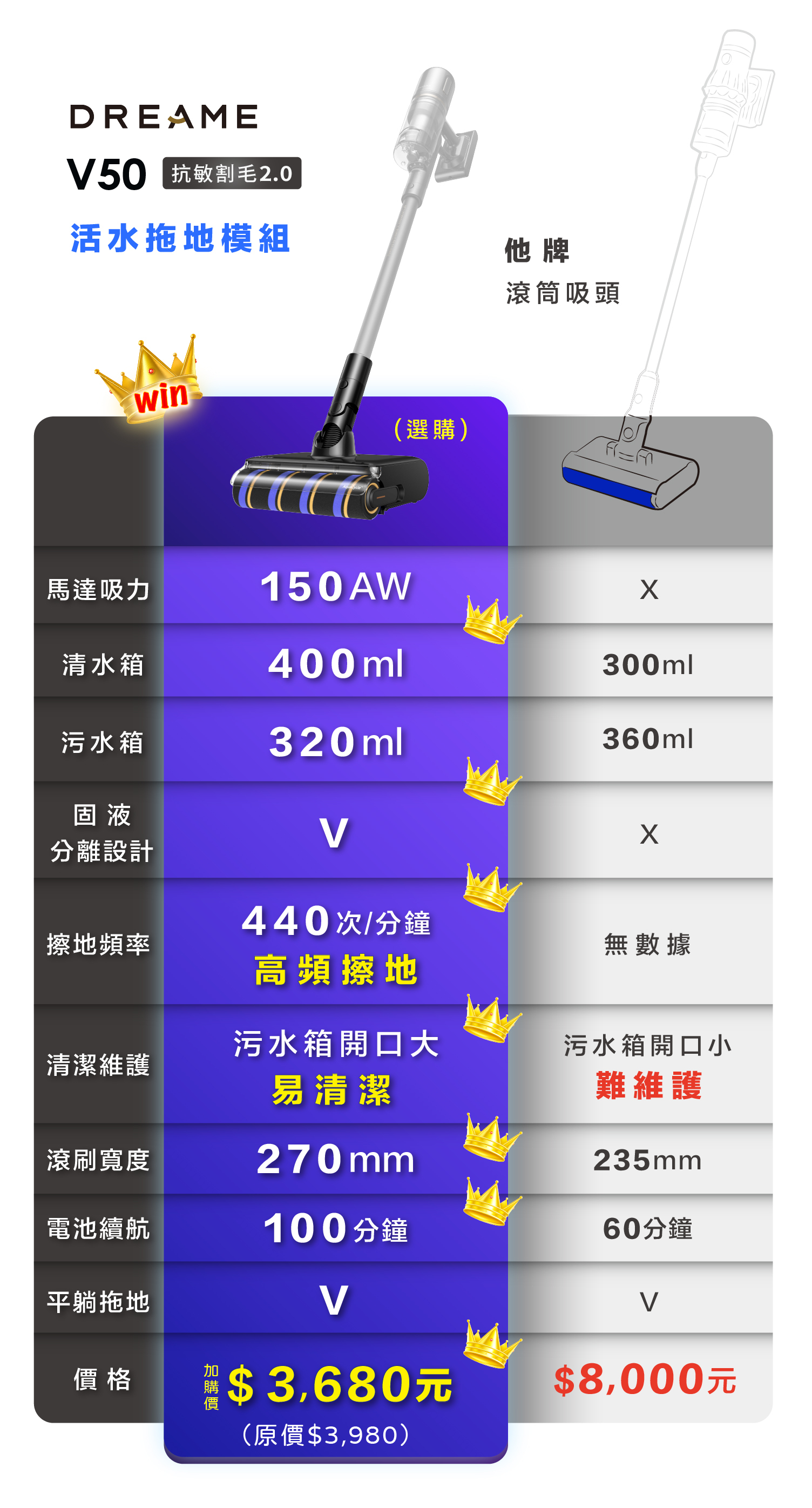 (加購)主動式吸水洗地模組|自動調整清潔強度、電解水濕拖、高效吸水