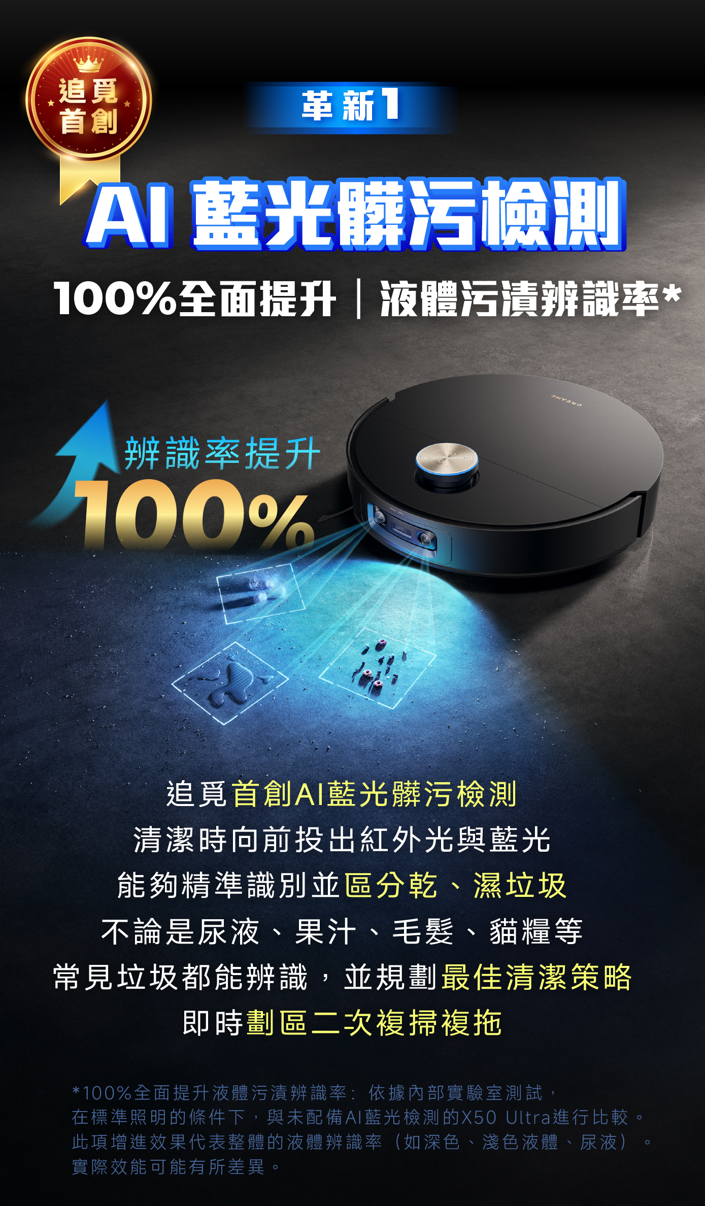 1️⃣ AI藍光髒污檢測 精準識別尿液、毛髮、垃圾