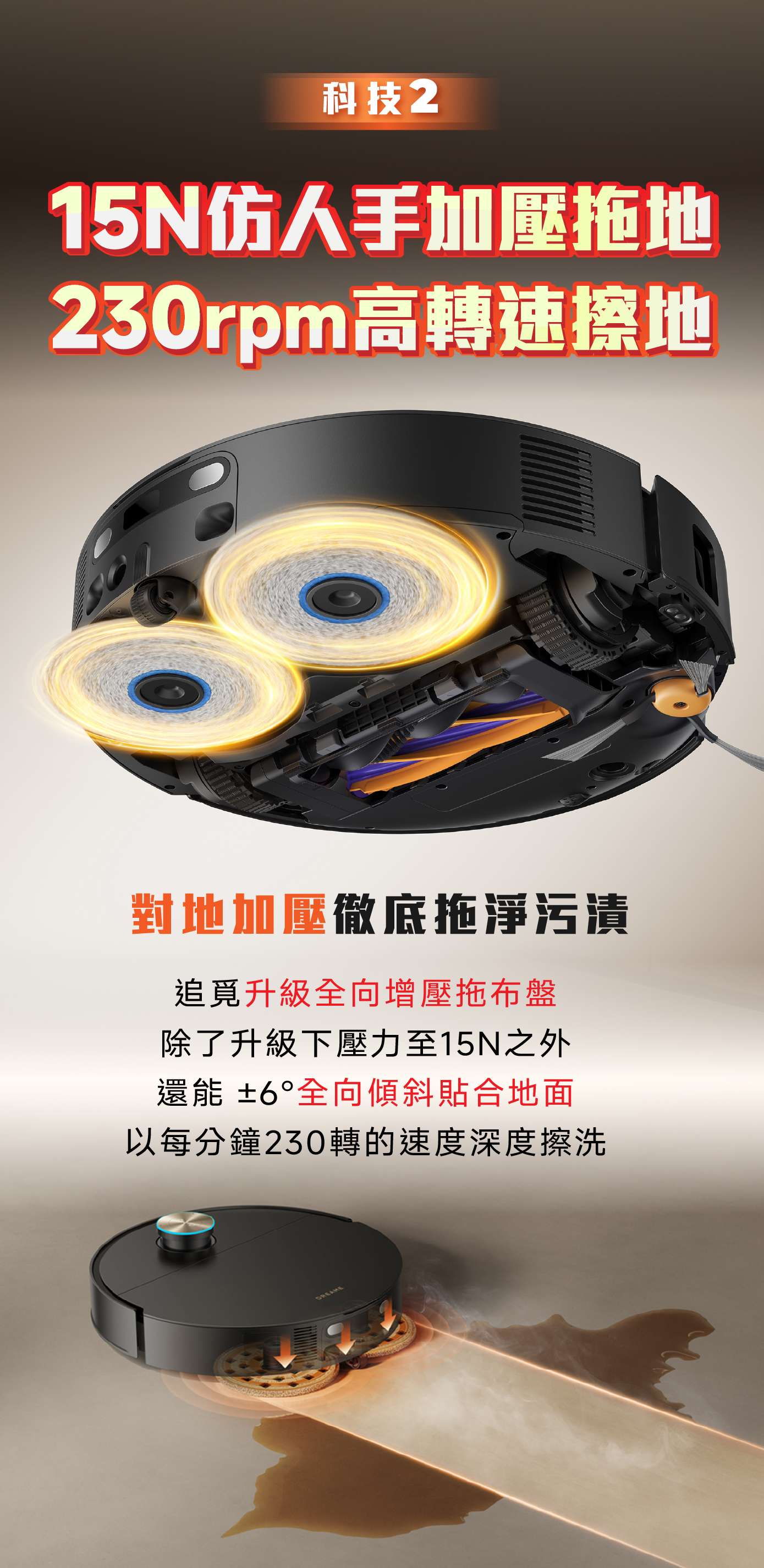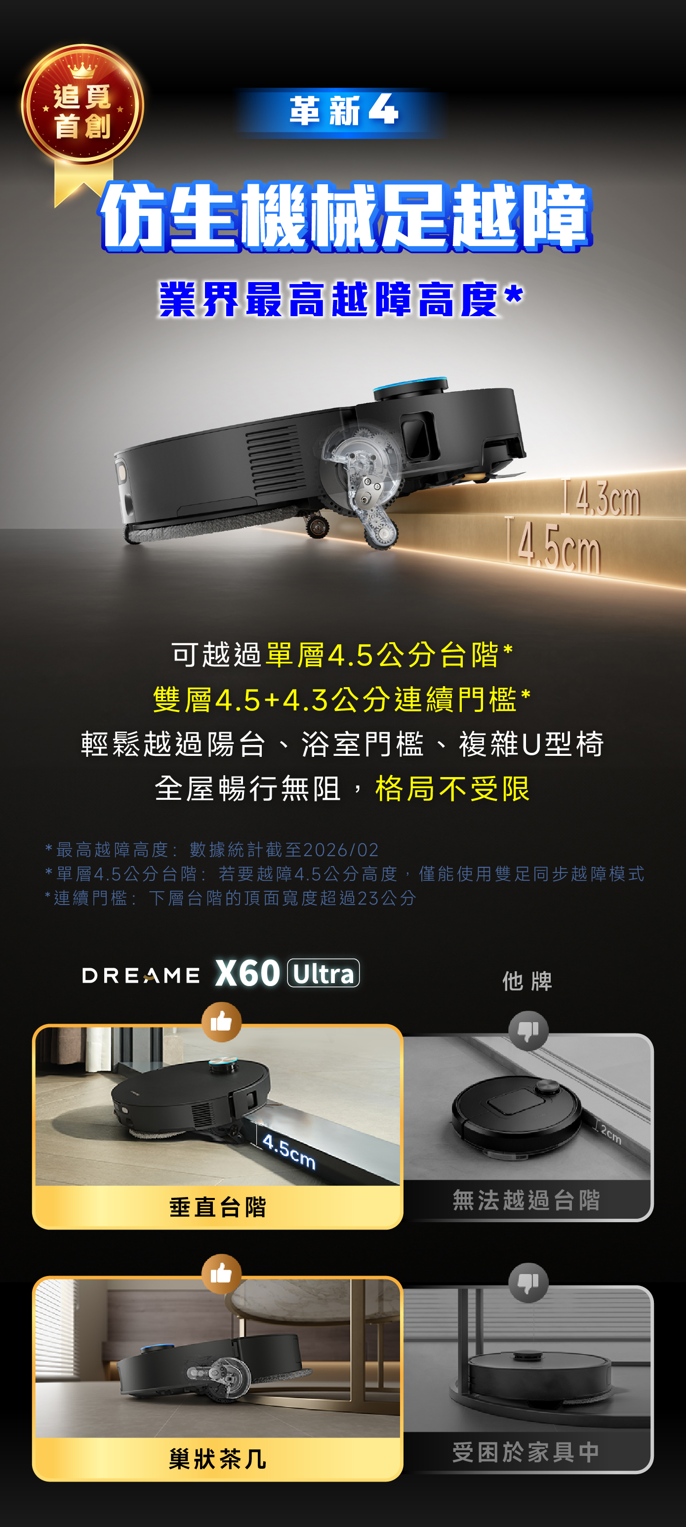 4️⃣ 仿生機械足 跨越4.5+4.3cm門檻 全屋清潔