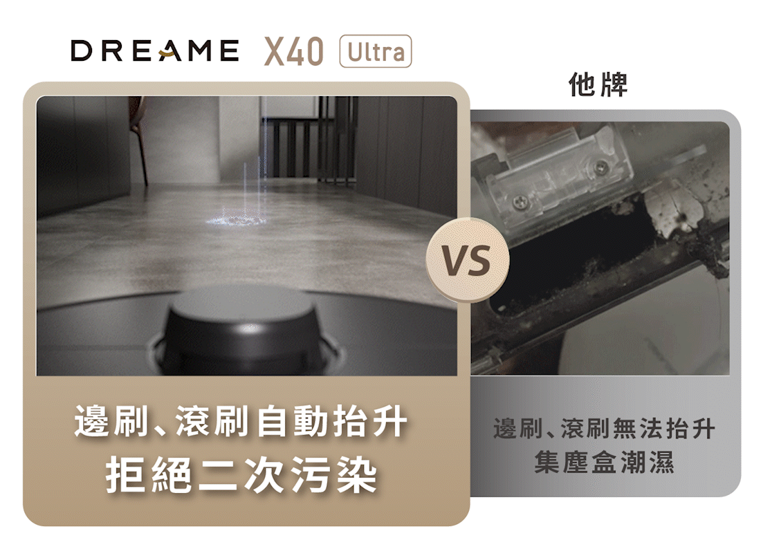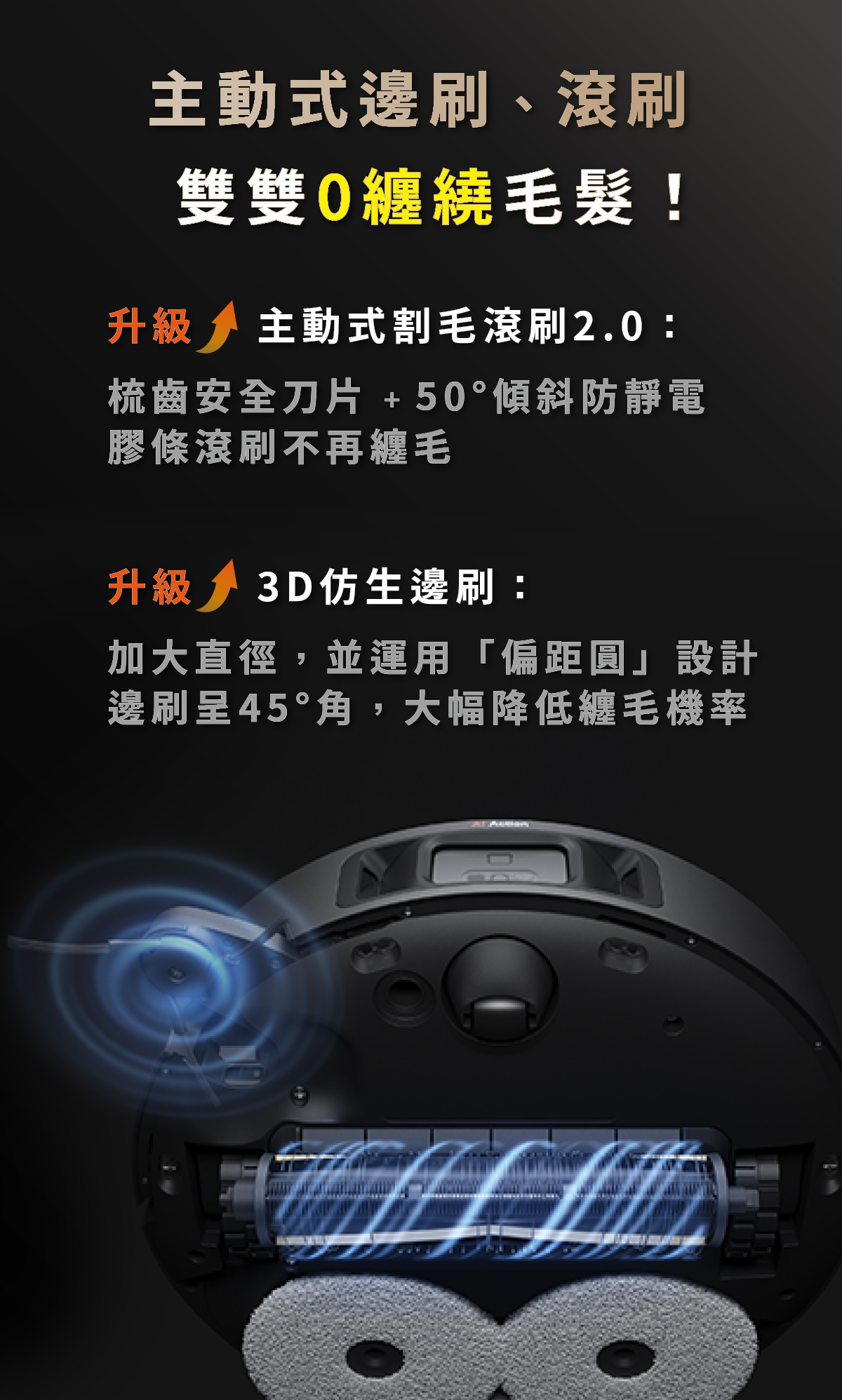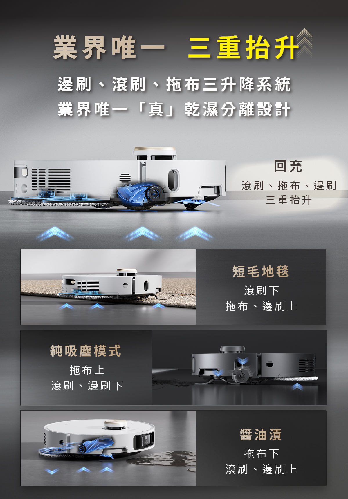 ✔ 超智能|滾刷、邊刷、拖布三重抬升