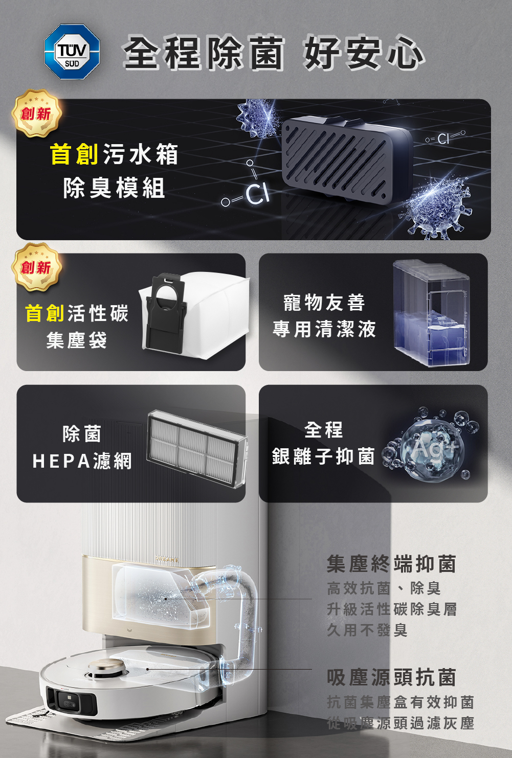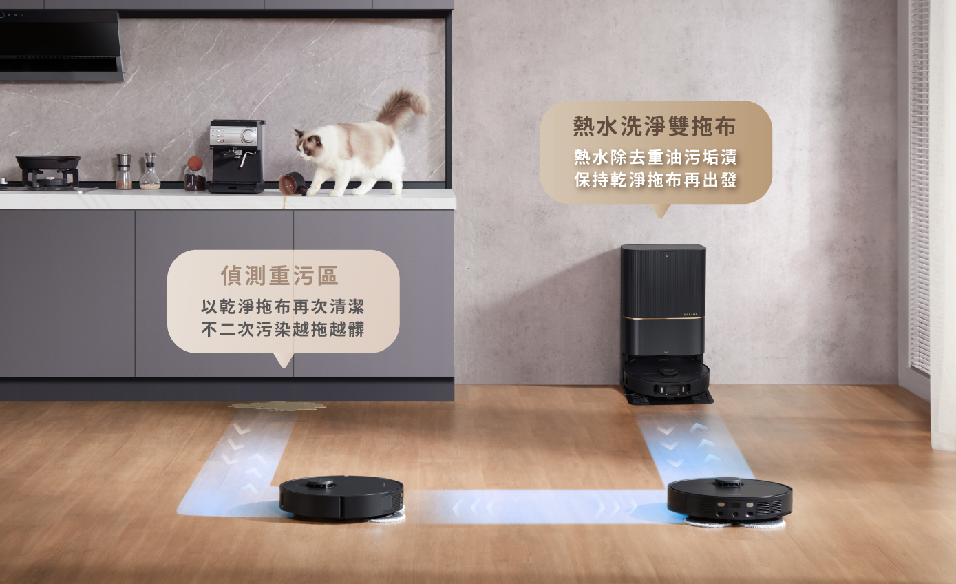 ✔ 超聰明|AI智能託管3.0+多光譜感測,「重污區」自動二次複洗複拖