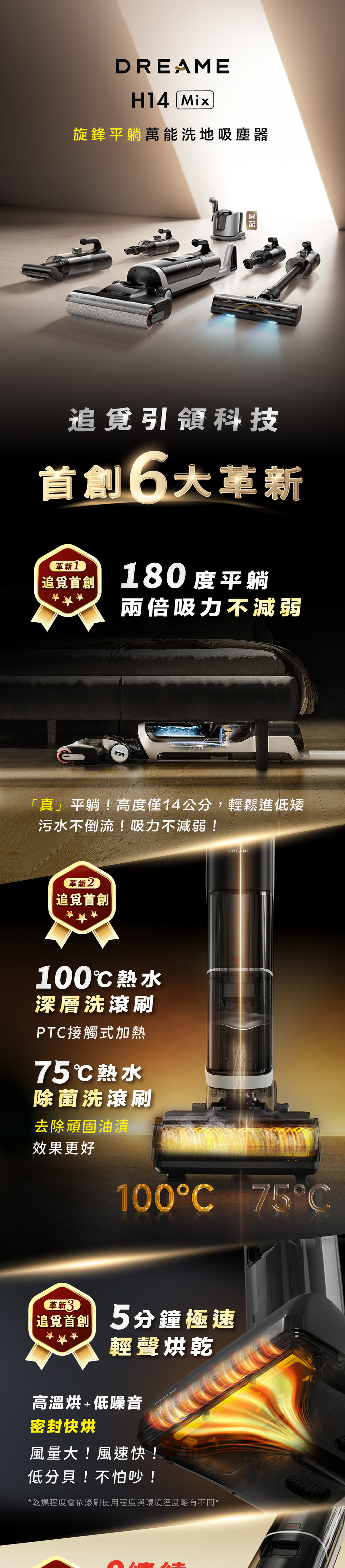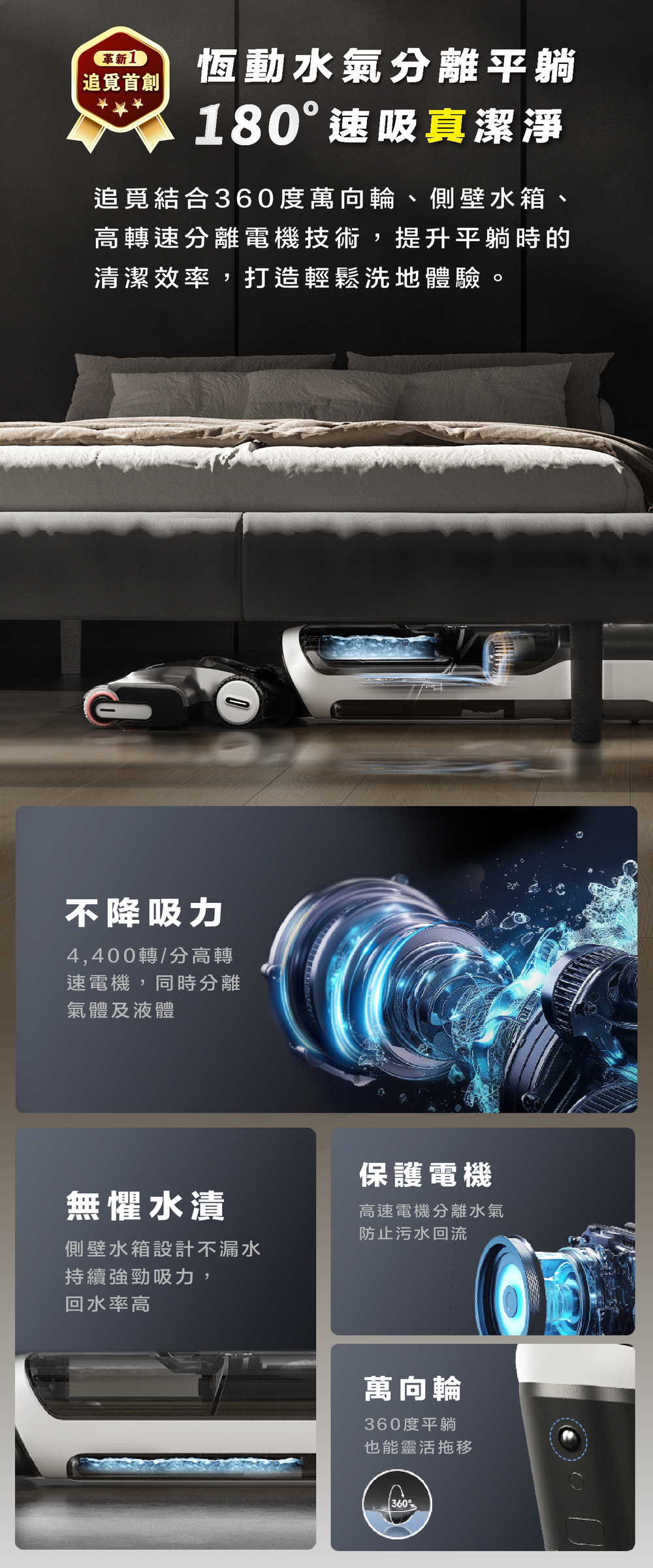 首創|180度平躺,平躺吸力不減弱