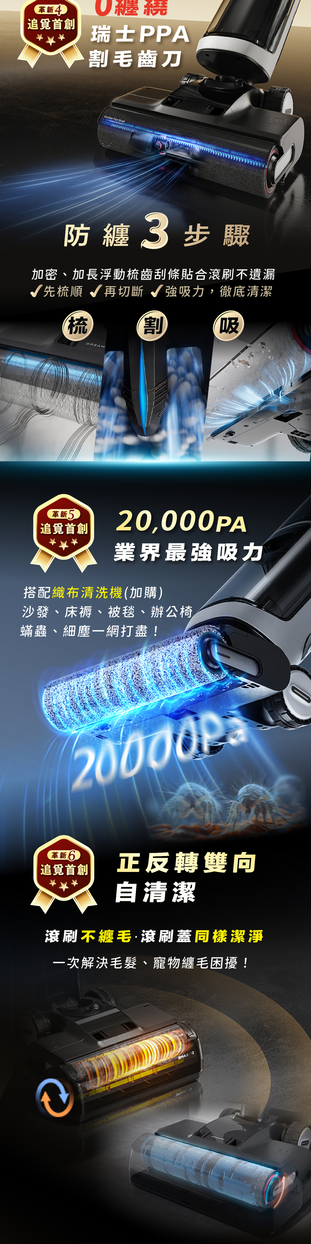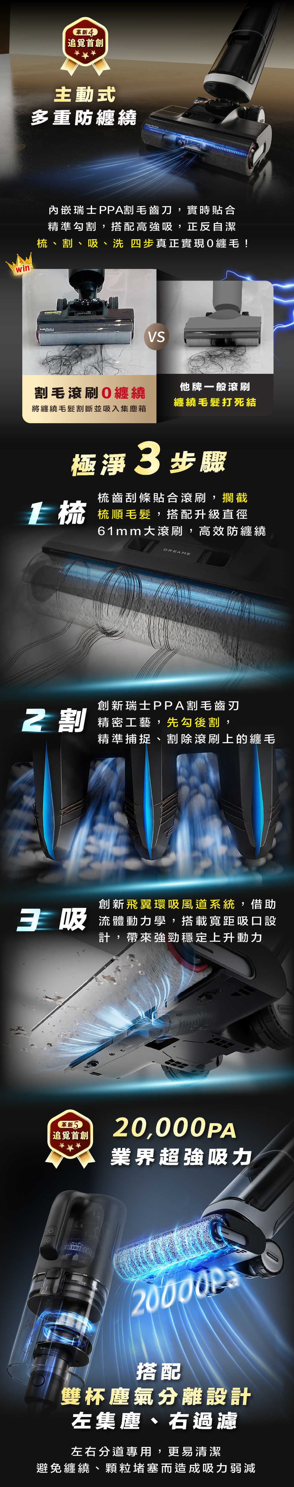 ✔ 20,000Pa 超強吸力:一吸就乾淨