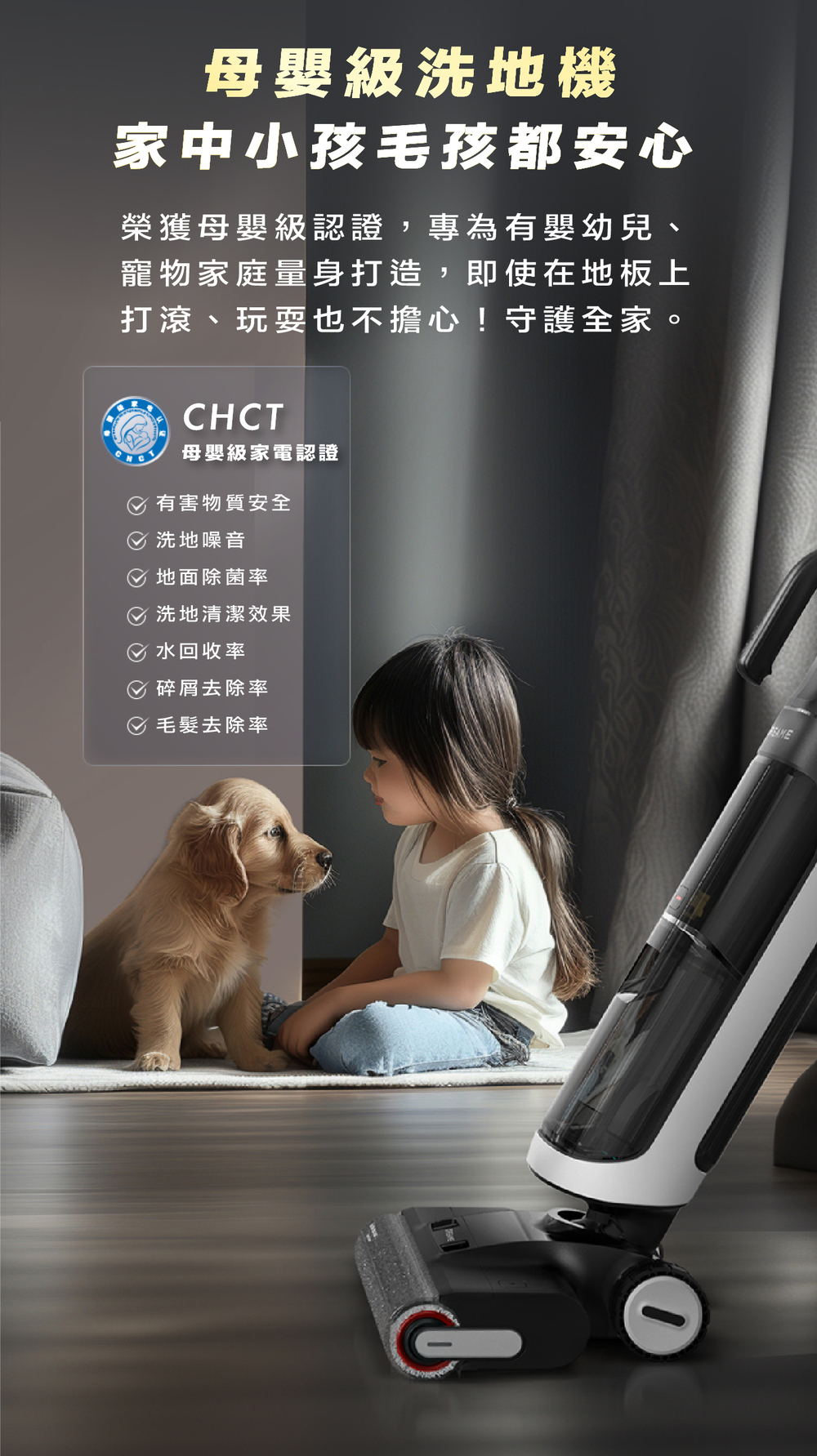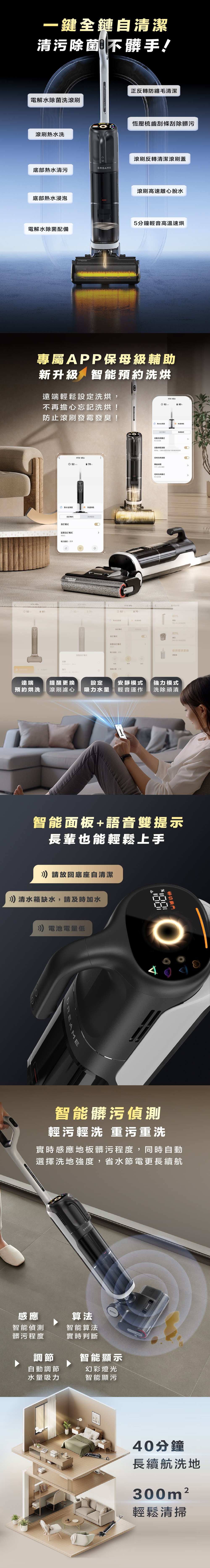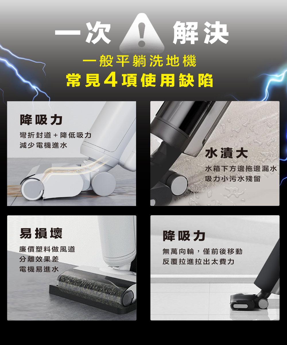 ✔ 智能髒污感測:自動調節吸力水量,輕污輕洗、重污重洗