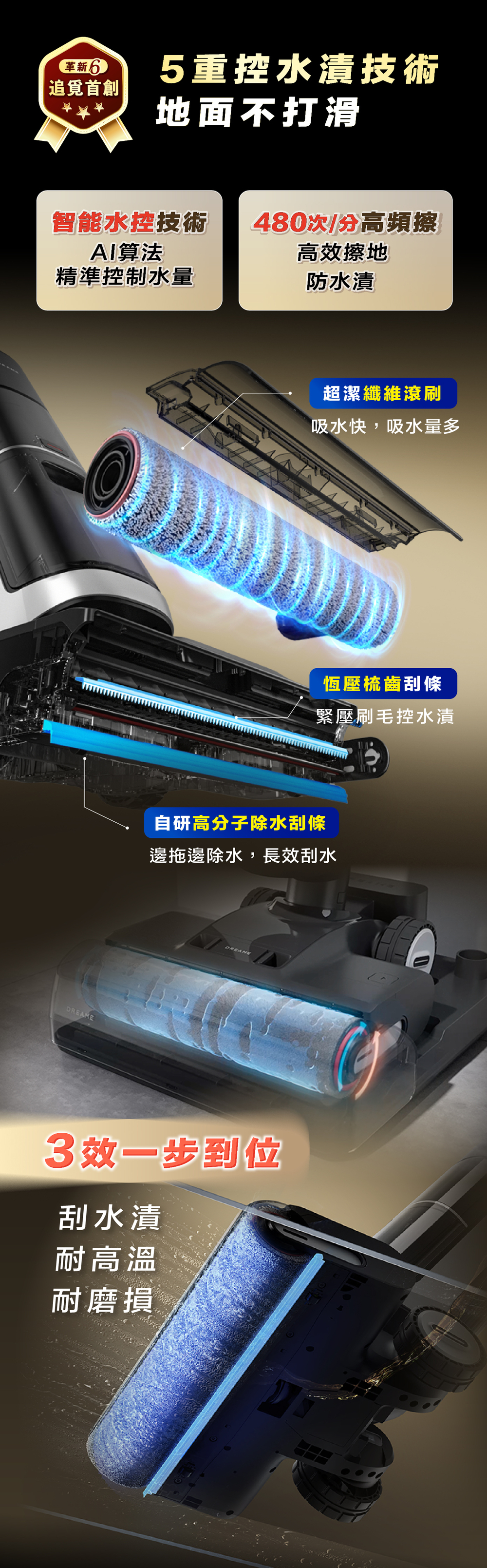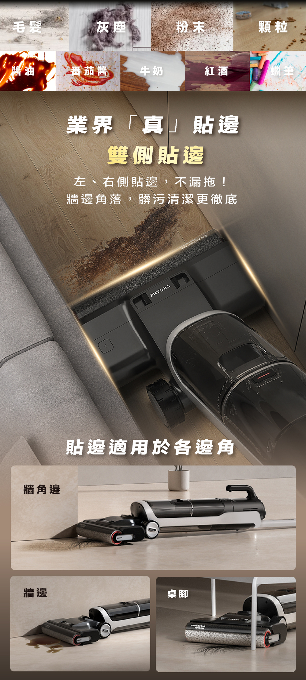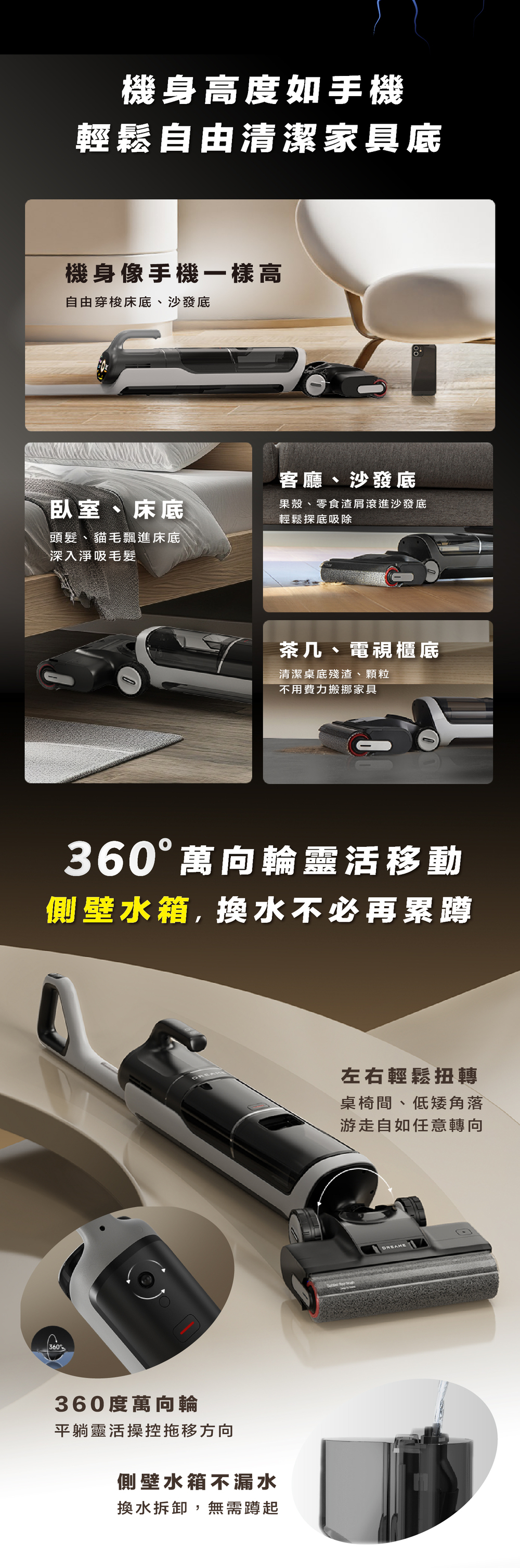✔ 智能髒污感測:自動調節吸力水量,輕污輕洗、重污重洗