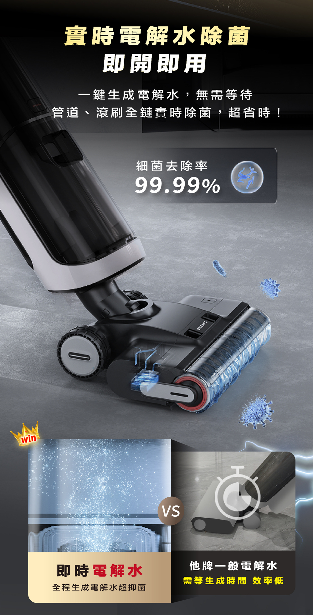 ✔ 全方位五重除菌:電解水+清潔液+抗菌滾刷+抗菌濾芯+抗菌污水箱