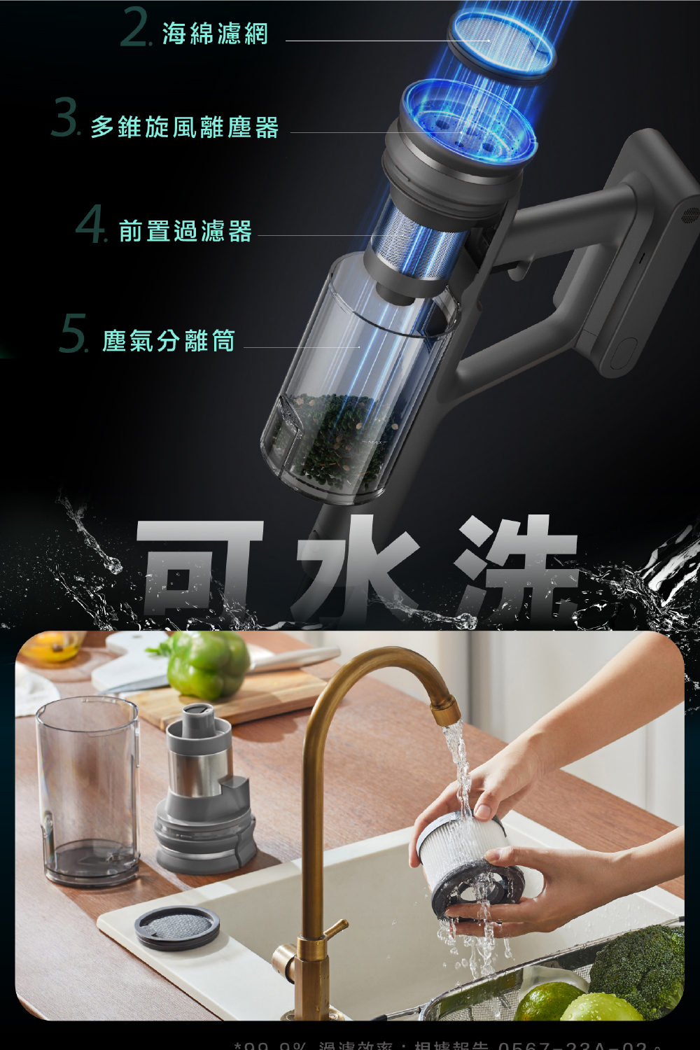 ✔ Cyclone Filtration旋風離塵技術|基座密封式濾網,有效過濾4種過敏原