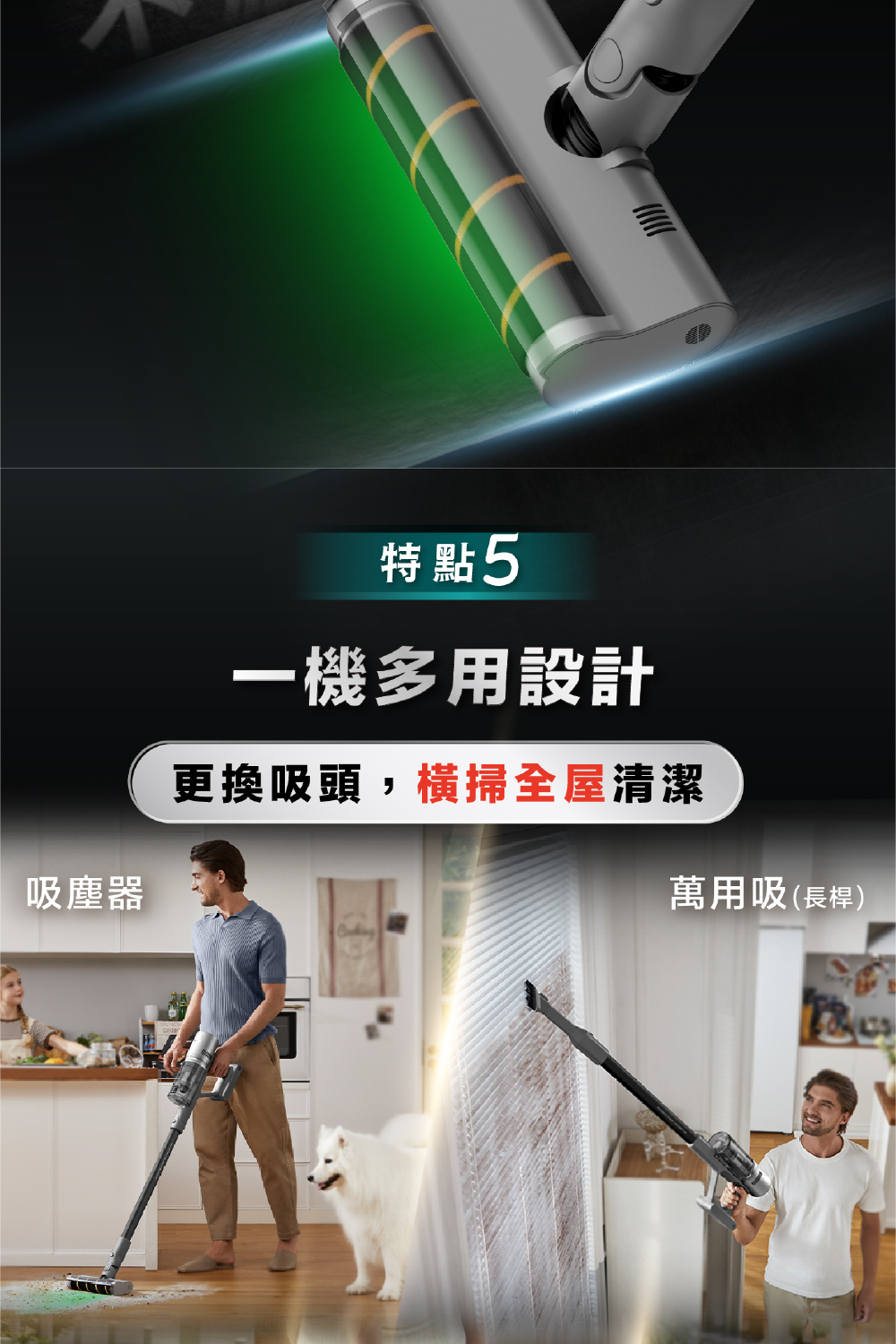 ✔ 綠光顯塵設計|16倍放大灰塵,清潔更徹底