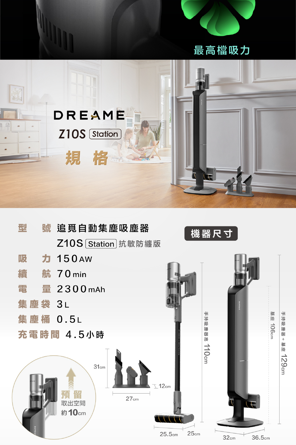 ✔ 150AW超強吸力|灰塵、碎屑、顆粒,全部一網打盡